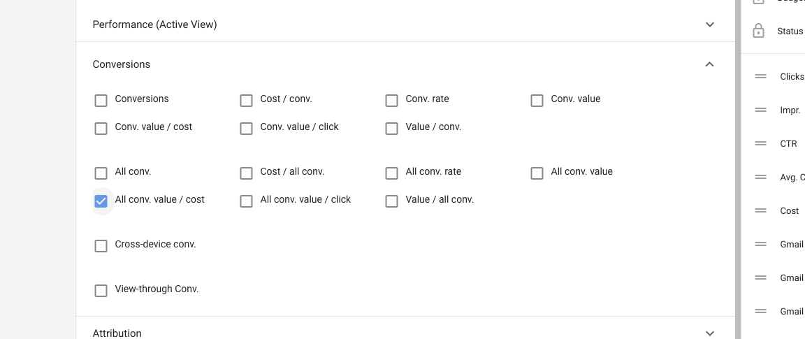 A great way to get a simple picture of your overall ROI is to use the All Conv. Value / Cost column. This column shows you how much you are getting back for every dollar that you put into the account.