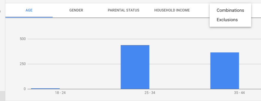 Demographic data is important when refining your Google Ads, and the combinations report gives you the opportunity to paint a better picture of the specific type of people who engage with your ads. This tool shows you how certain demographic combinations are performing. For example; isolating data on females, aged 18-24, that are not parents & are in the 11-20% income bracket will help you to see their clicks, conversions and more as a combination demographic.